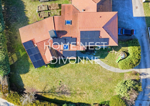 Grilly - Beaucoup de charmes pour ce grand chalet traditionnel avec jardin paysager parfaitement équilibré entre espaces arborés et agencements fleuris qui poussent le visiteur à découvrir les 1500 m2 de jardin, et à profiter des vues exceptionnelles sur la Vallée, sur la Chaîne des Alpes et sur le Lac Léman. La propriété comprend deux habitations : L’habitation principale de 124 m2 s’organise sur deux niveaux : Au rez, un hall d’entrée, un vaste salon - séjour cathédrale de 52 m2 avec grand balcon filant, une cuisine, deux chambres avec une salle de douche. A l'étage, un espace ouvert et une suite parentale spacieuse composée d'une chambre de 20 m² et de sa salle de bains. Avec ses matériaux nobles et de qualité, cette habitation a un caractère chaleureux, accueillant et convivial, idéal pour une famille, tant pour son interieur que pour ses extérieurs (balcon / terrasse et jardin). Au rez-de-jardin inférieur, une deuxième habitation de type T3 vous permet de recevoir vos amis ou de la famille dans un lieu indépendant. Cet appartement secondaire de 85 m² comprend un hall d’entrée, un séjour de 22 m², une cuisine ouvrant sur une pièce de 10 m² pouvant être aménagée en salle à manger, une première chambre de 12,6 m2 avec rangements, une seconde chambre spacieuse de 19 m² avec rangements, une salle de douche. Cet appartement pourrait nécessiter un rafraîchissement pour disposer d"un produit d'investissement. Location envisageable à 2'100 €, ce qui autofinancerait en partie l'acquisition de cette maison. Le DPE classe la maison en D pour la partie consommation énergétique et F pour la partie gaz à effet de serre Un grenier, un garage indépendant et plusieurs places de stationnement extérieures complètent ce bien. Cette propriété bénéficie d’un emplacement idéal, à proximité immédiate de Divonne-les-Bains et de toutes ses commodités. La frontière suisse est accessible en quelques minutes (à 20 minutes de l’aéroport international de Genève), facilitant l’accès au bassin d’emplois (organisations internationales, CERN…) et à l'autoroute pendulaire Genève - Nyon - Lausanne. N'hésitez pas à nous contacter au 04 50 20 41 07. Visites sur rendez-vous.HOME’NEST Immobilier – 269 Avenue de Genève, 01220 Divonne-les-Bains.Les informations sur les risques auxquels ce bien est exposé sont disponibles sur le site Géorisques : https://www.georisques.gouv.fr.
