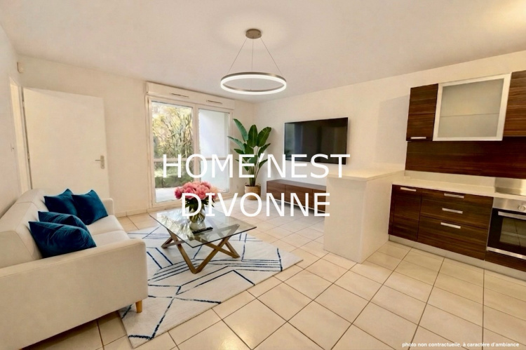 Ref : 1525-bisA Prévessin-Moëns, cet appartement T2 en rez-de-jardin est situé dans une résidence calme construite en 2009. Il se compose : d'un hall d'entrée avec placard-penderie, d'un séjour-cuisine...